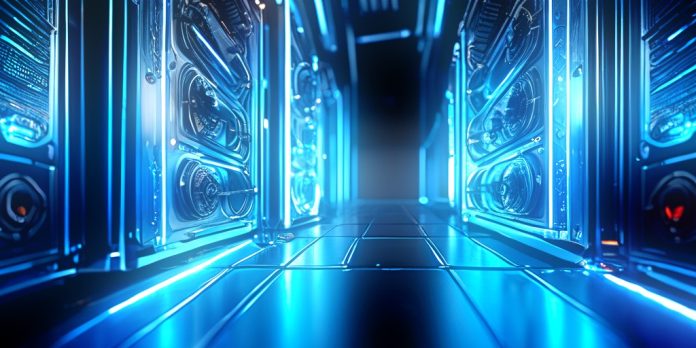 : Macro shot of a single, powerful CPU die connected by glowing blue traces to dedicated memory modules, representing the raw, measured performance baseline on bare metal. Technical schematics style, sharp focus on silicon texture.