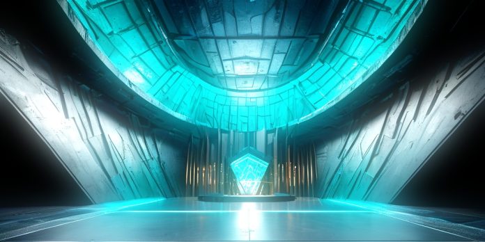 : A close-up conceptual render of a digital safe (vault icon) surrounded by a lattice of glowing green AES-256 cryptographic algorithms, illustrating the concept of a master key protecting nested data. Focus on light and texture. photorealistic, 8k, sharp focus, cinematic lighting, technical blueprint aesthetic. NO TEXT.