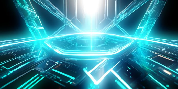 : A conceptual visualization of a digital lock transforming into a complex cryptographic key represented by light beams, emphasizing irreversible transformation and strong security posture, technical blueprint aesthetic.